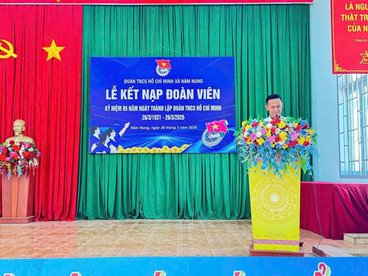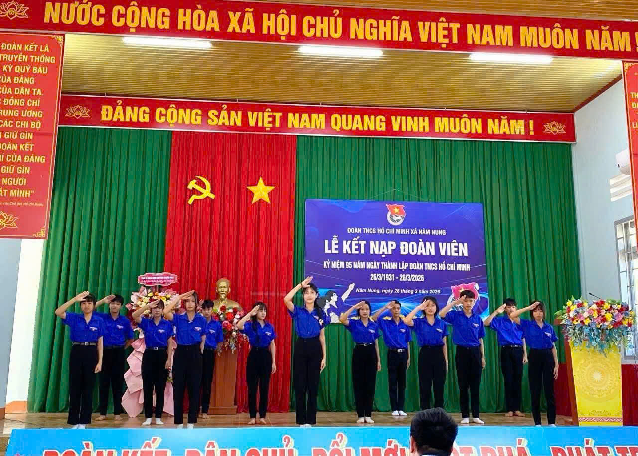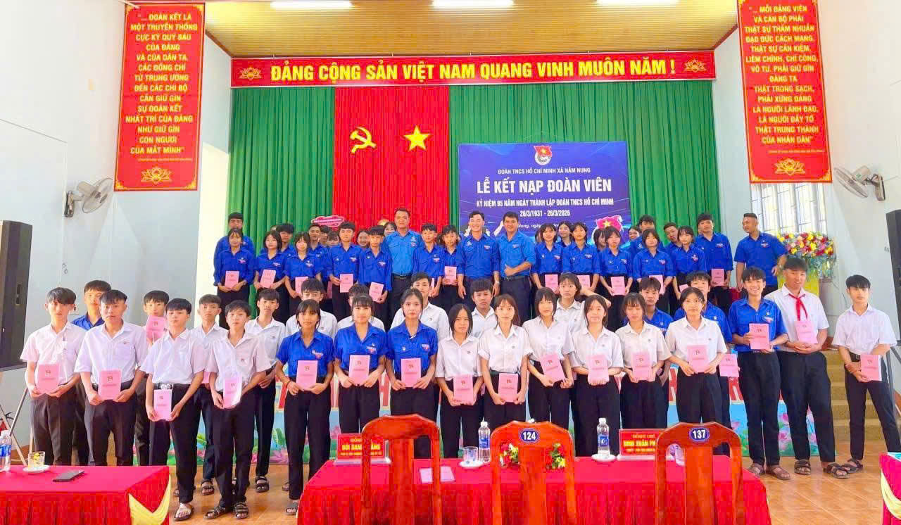 Hòa chung không khí thi đua sôi nổi của tháng thanh niên và hướng tới kỷ niệm 95 năm Ngày thành lập Đoàn TNCS Hồ Chí Minh (26/3/1931 – 26/3/2026). Ngày 26/3/2026, Đoàn xã Nâm Nung long trọng tổ chức Lễ kết nạp Đoàn viên mới cho 95 thanh niên, đội viên ưu tú. Trong đó, trường THCS Nâm N’Đir có 33 đội viên ưu tú được kết nạp Đoàn.