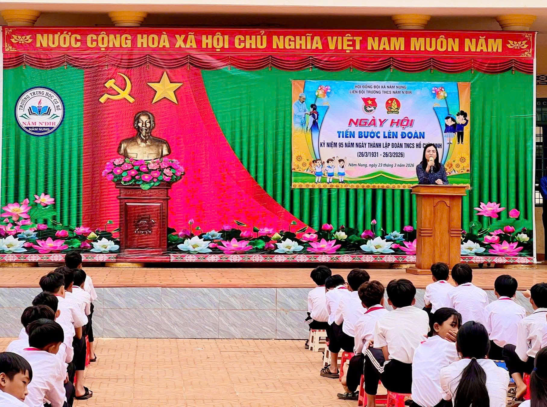 Sáng ngày 23/03/2026, trường THCS Nâm N’Đir phối hợp với BCH Đoàn xã Nâm Nung tổ chức ngày hội “TIẾN BƯỚC LÊN ĐOÀN” chào mừng kỷ niệm 95 năm ngày thành lập Đoàn TNCS Hồ Chí Minh (26/03/1931 – 26/03/2026)