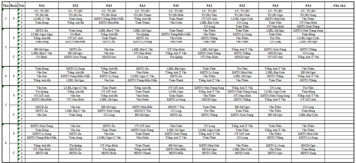 THỜI KHÓA BIỂU