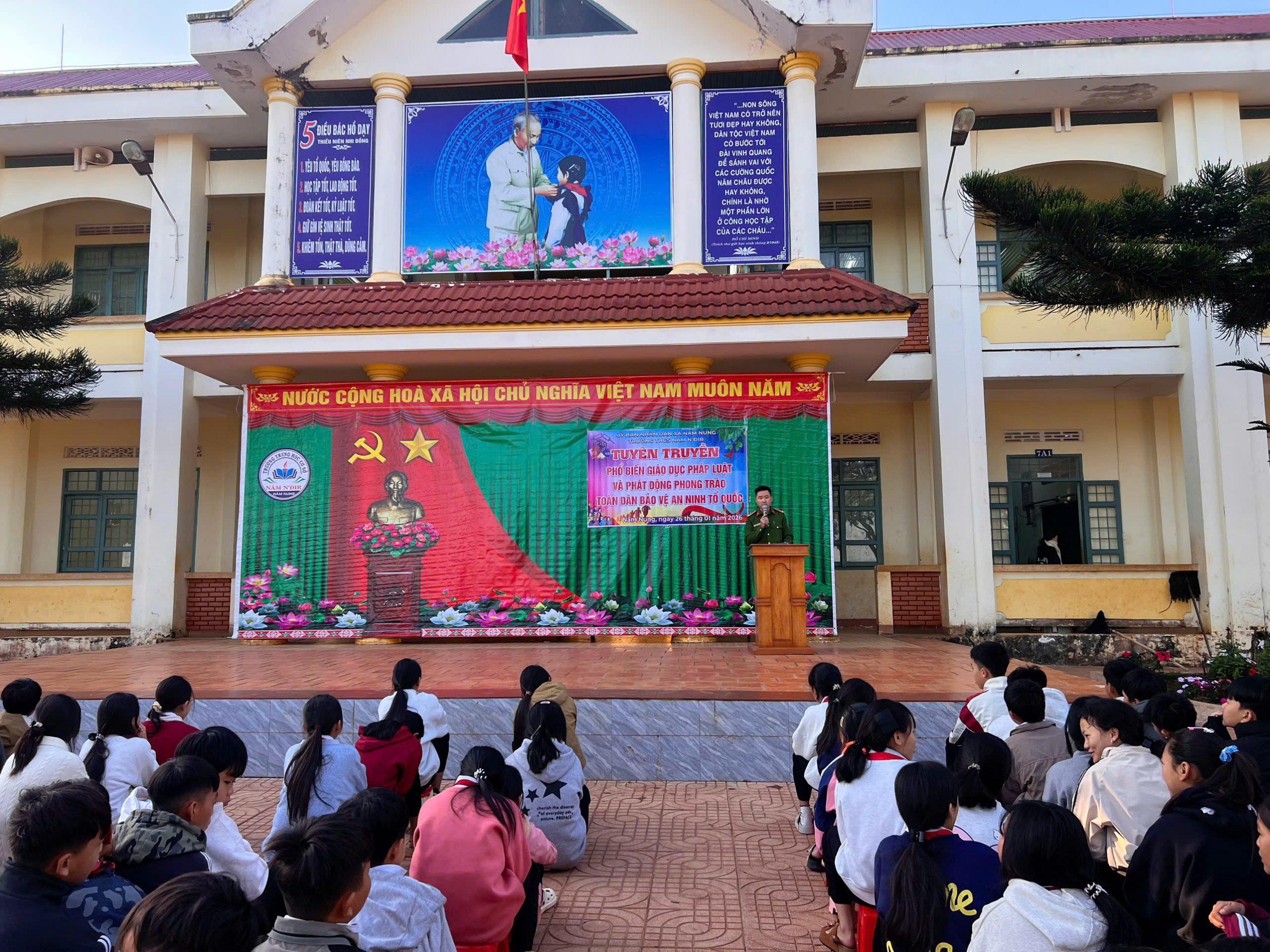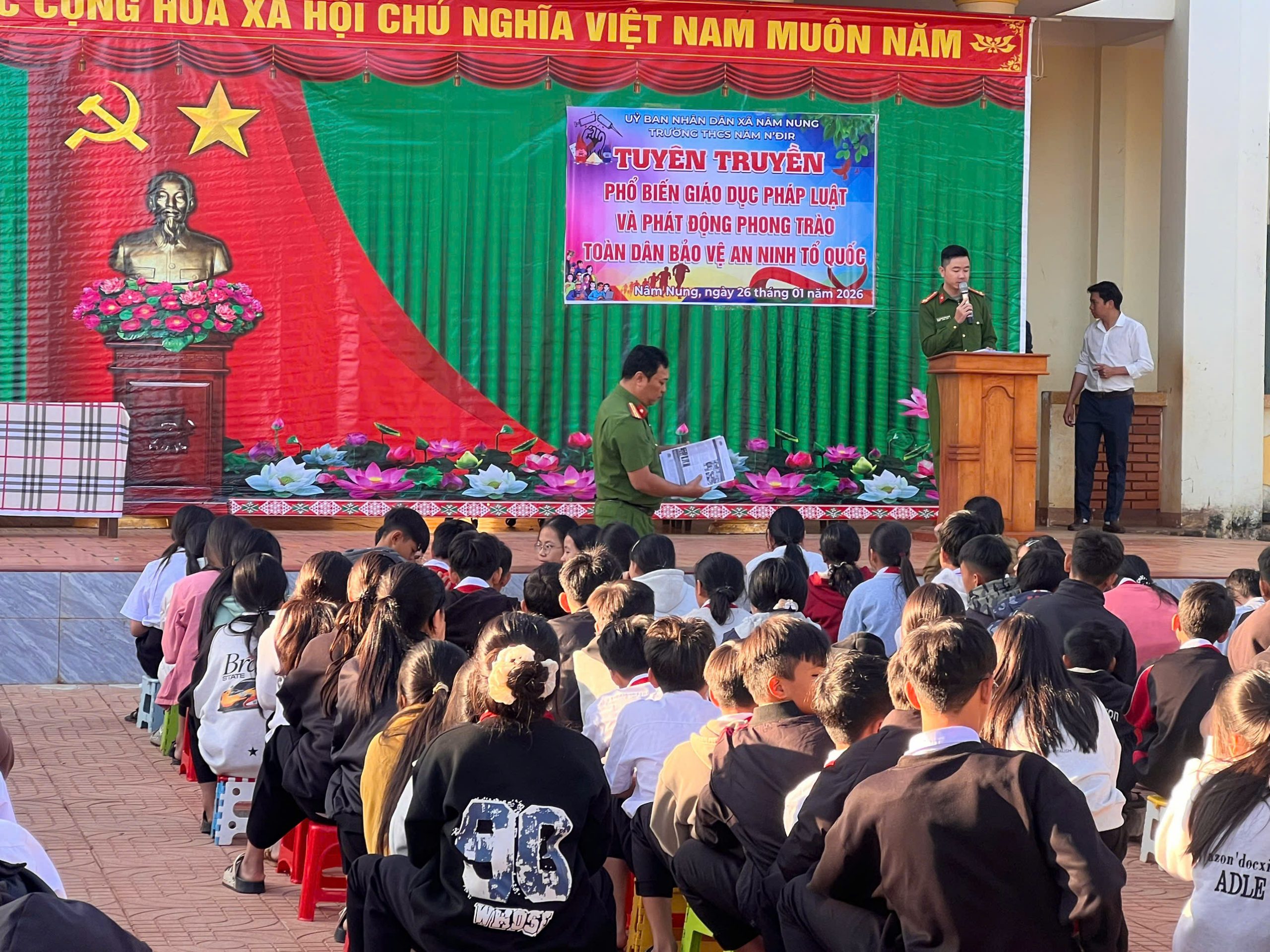 Ngày 26/01/2026, trường THCS Nâm N’Đir phối hợp với Công an xã Nâm Nung tổ chức chương trình tuyên truyền, phổ biến giáo dục pháp luật dành cho học sinh toàn trường.